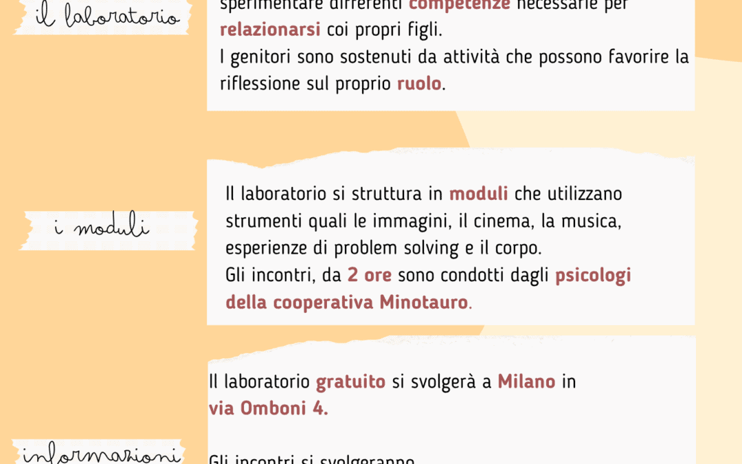 I genitori interessati possono inviare una mail a: officine@minotauro.it