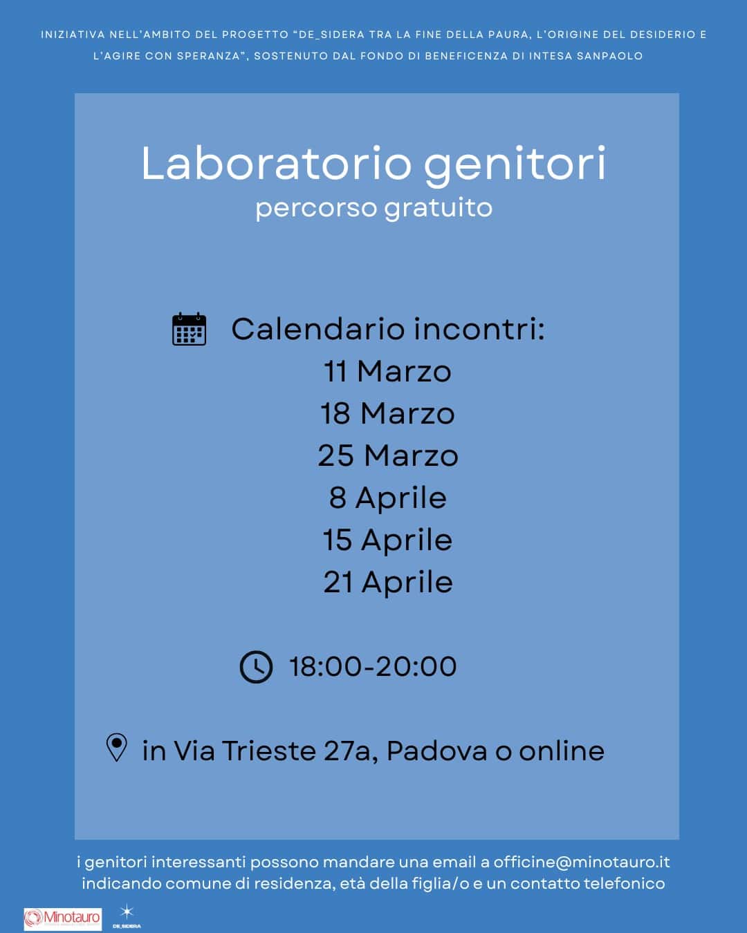 I genitori interessanti possono mandare una email a officine@minotauro.it indicando comune di residenza, età della figlia/ o e un contatto telefonico